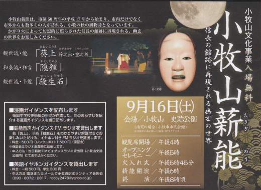 薪能で、 観世流 「葵上」英語ガイダンスを担当 |