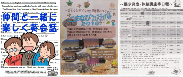 | 「実用英会話」・「仲間と学ぶ英会話」・ 「仲間と楽しく英会話」など市民講座講師 ![]() |